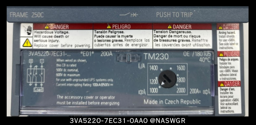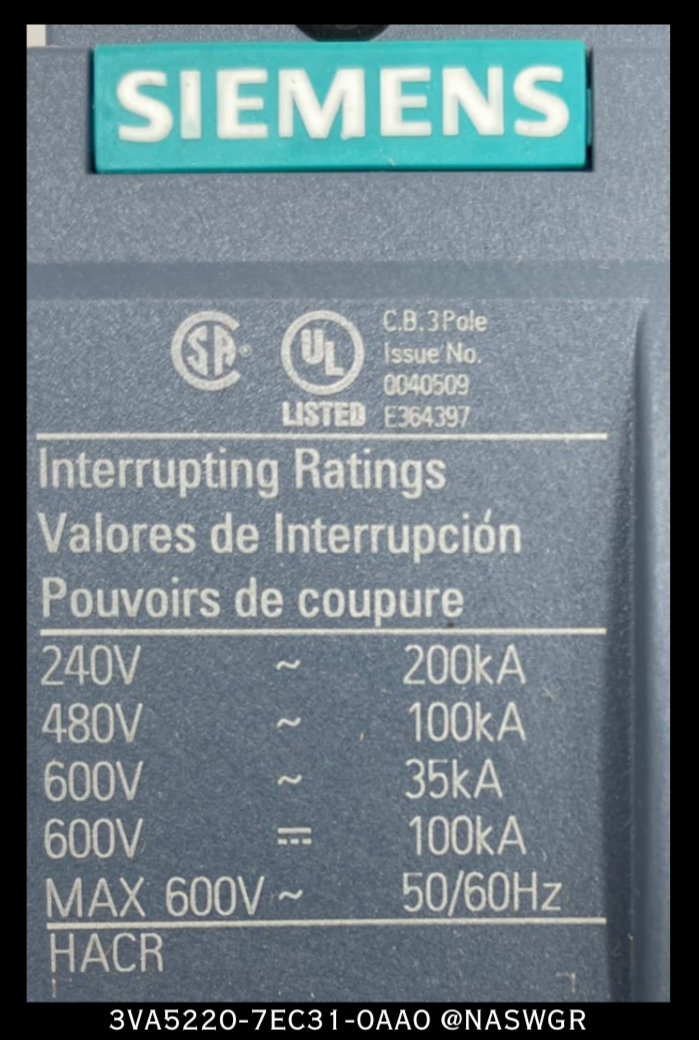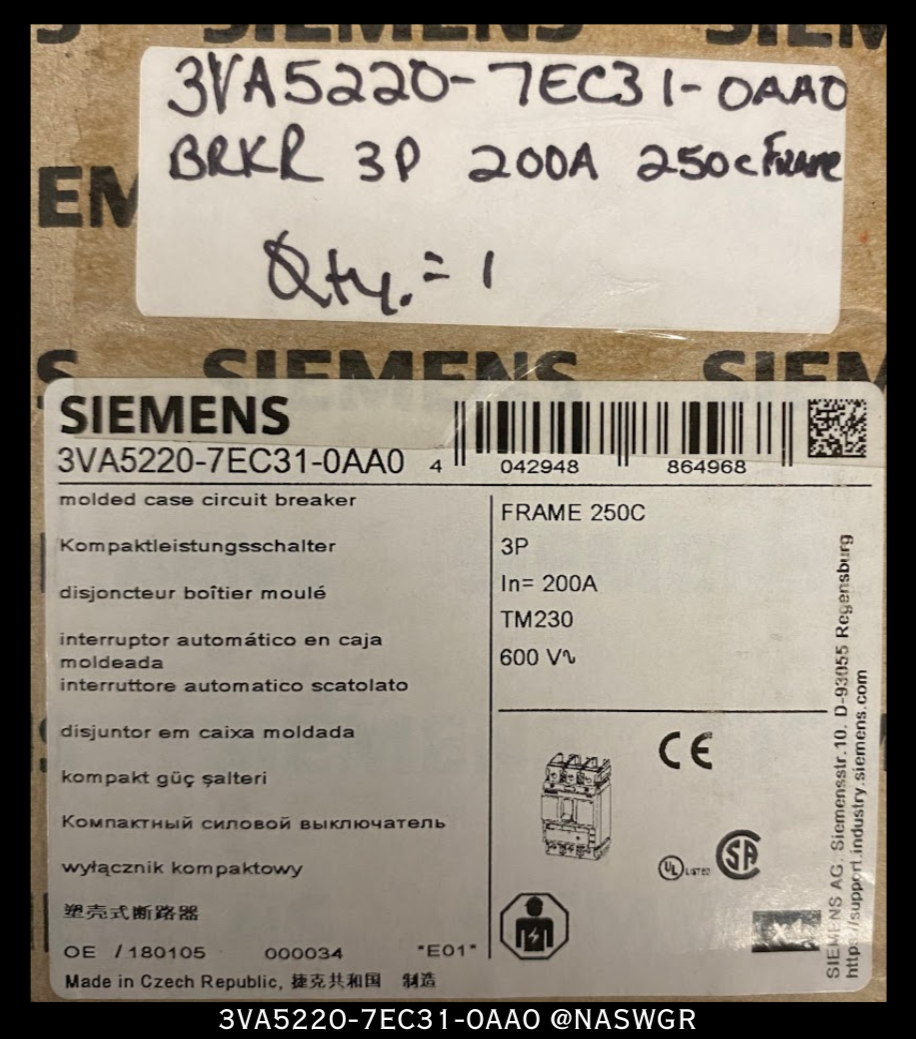 Each Unused 3VA5220-7EC31-0AA0 is Inspected, Tested With Report, and Carries our One Year Warranty.