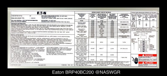 Eaton BRP40BC200 Main Breaker Loadcenter - 200A/240V/N1 - Unused