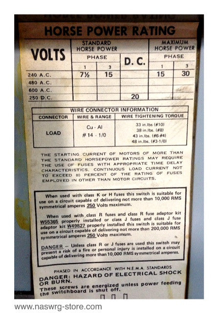 H.P. 15 , MAX. 7 1/2 , 250 volts